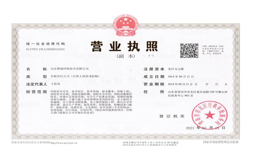 山東博通環(huán)保技術(shù)有限公司是一家專業(yè)從事環(huán)保、安全、消防的多元化技術(shù)服務(wù)公司,公司致力于打造專業(yè)的技術(shù)服務(wù)團隊,立足青島,輻射山東,服務(wù)范圍涵蓋:環(huán)保技術(shù)開發(fā)、技術(shù)轉(zhuǎn)讓、技術(shù)咨詢、技術(shù)服務(wù);環(huán)保工程;消防技術(shù)咨詢;消防設(shè)施檢測;消防安全評估;消防設(shè)施維護保養(yǎng);環(huán)境應(yīng)急預(yù)案咨詢;安全生產(chǎn)標準化咨詢;場地環(huán)境調(diào)查報告編制,土壤與地下水環(huán)境調(diào)查及風(fēng)險評估,水土保持方案編制,水土保持過程監(jiān)測,水土保持驗收工程,排污許可申報代理,清潔生產(chǎn)審核;批發(fā)零售:環(huán)保設(shè)備、機械設(shè)備與配件、消防設(shè)備、儀器儀表、五金建材、化學(xué)試劑(不含危險品)。公司具有“建設(shè)手續(xù)一站式辦理,安環(huán)問題一條龍解決”的獨特優(yōu)勢,可為客戶提供高效、優(yōu)質(zhì)的安全、環(huán)保、消防管家技術(shù)服務(wù)。